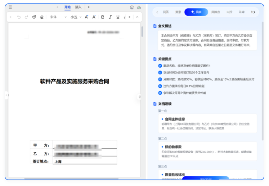 通过合同摘要提炼和可视化分析,帮助用户快速理解合同核心,为决策提供有力依据。