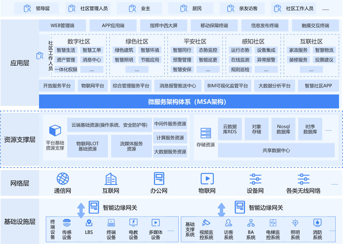 智慧社区贯通市、县 区、街道 乡镇、社区、小区五级架构。